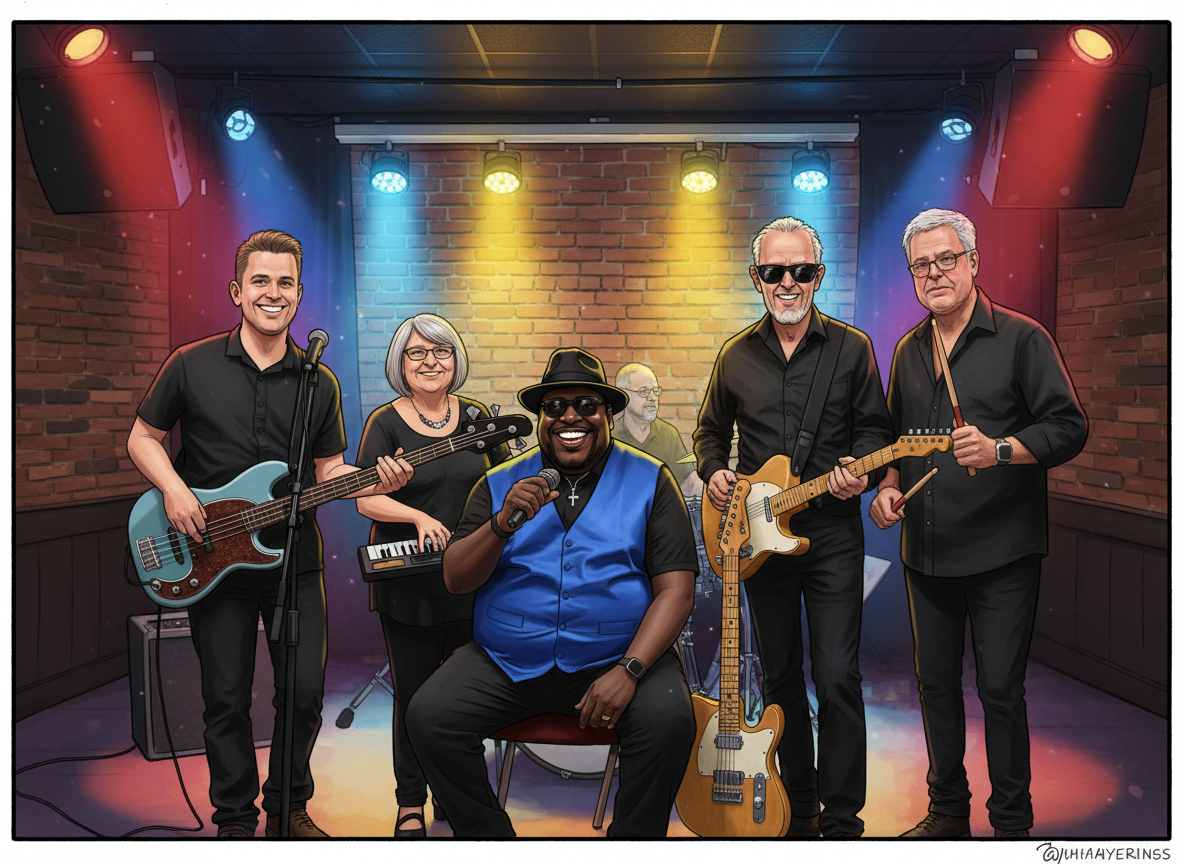 Our lineup features soaring lead guitar, driving bass, tight drums, soulful piano, expressive harmonica, and — when the groove calls for it — the electrifying sound of saxophone. Every performance is packed with recognizable hits, infectious rhythms, and the kind of musical chemistry that only comes from years of playing the blues the right way.